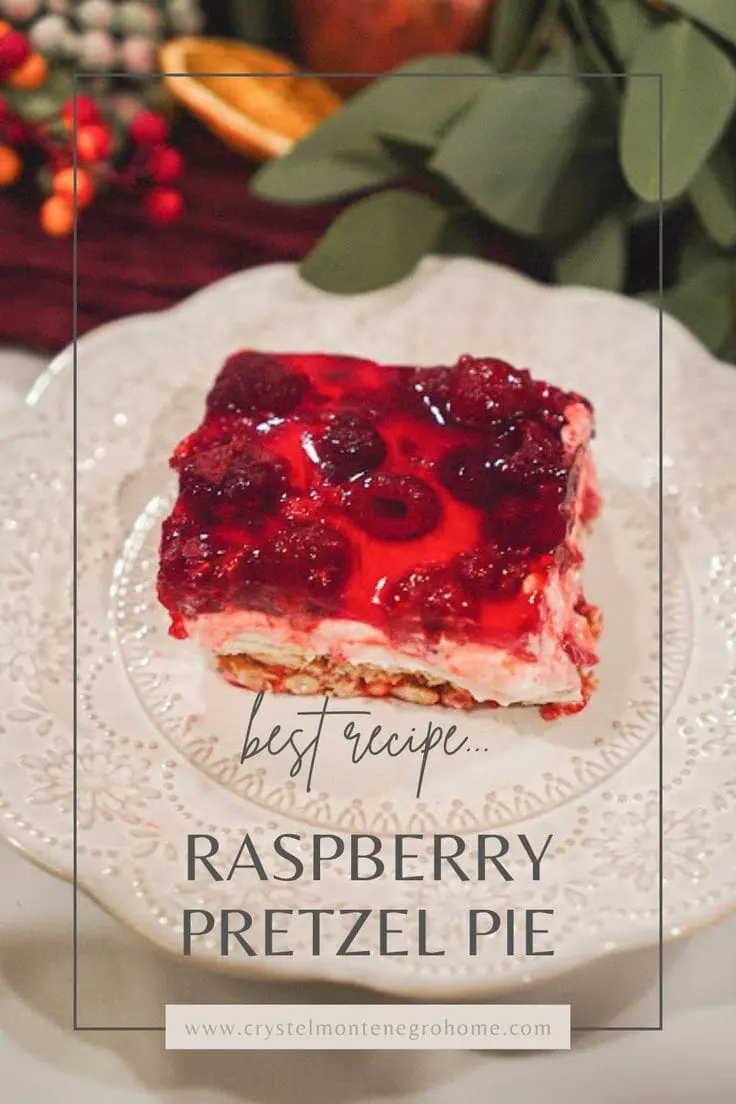 Our love for this raspberry pretzel pie runs deep in the Montenegro household, and it’s always a fight to the death for the last piece. Stuart has deemed this his favorite dessert and, therefore, always makes sure it finds its way onto the menu for his birthday, Thanksgiving, Christmas, and any other significant event we might be celebrating.