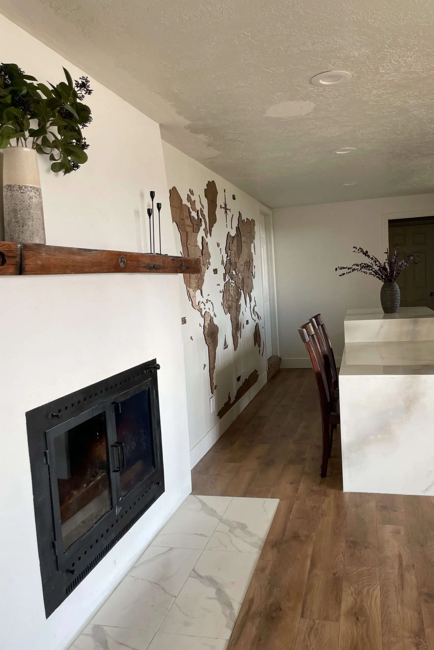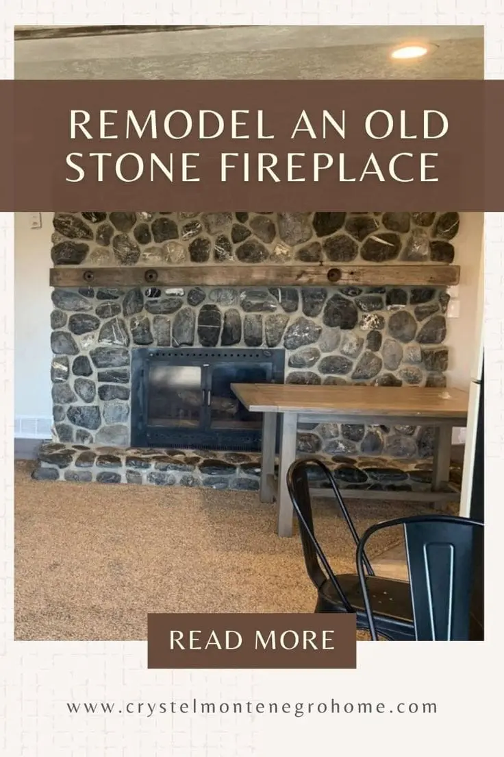 Although this DIY stone fireplace makeover was in the kitchen in our previous home, when moving into our current home we completely relocated and remodeled the kitchen, and I have all the details here.