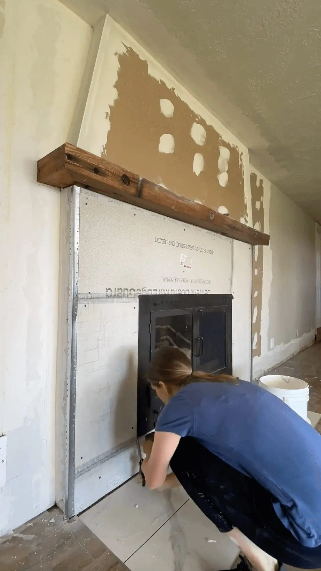 With all the rocks hauled away and the old mantle gone, we had a blank canvas for our DIY stone fireplace makeover.