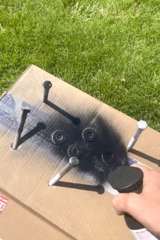 For this DIY stone fireplace makeover, I stained the inside of the holes and spray-painted the screws and washers black.